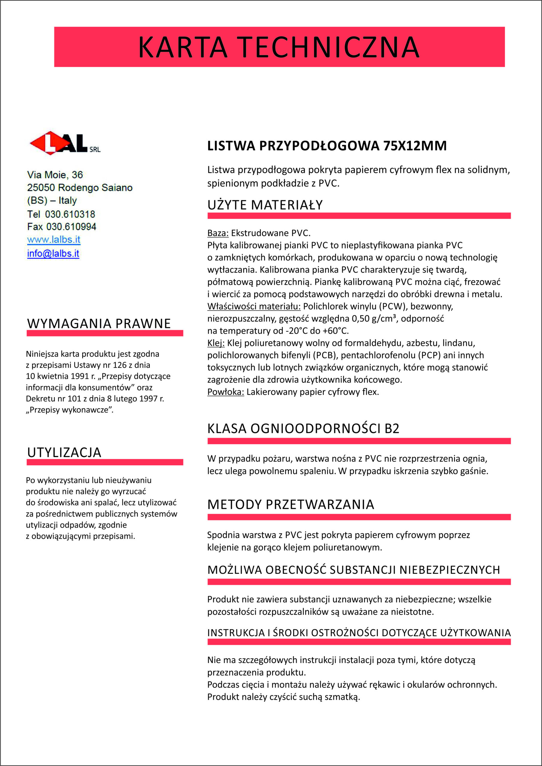 Dopasowane listwy przypodłogowe wykonane z ekspandowanego PCV, o wymiarze 75 x 12 mm.